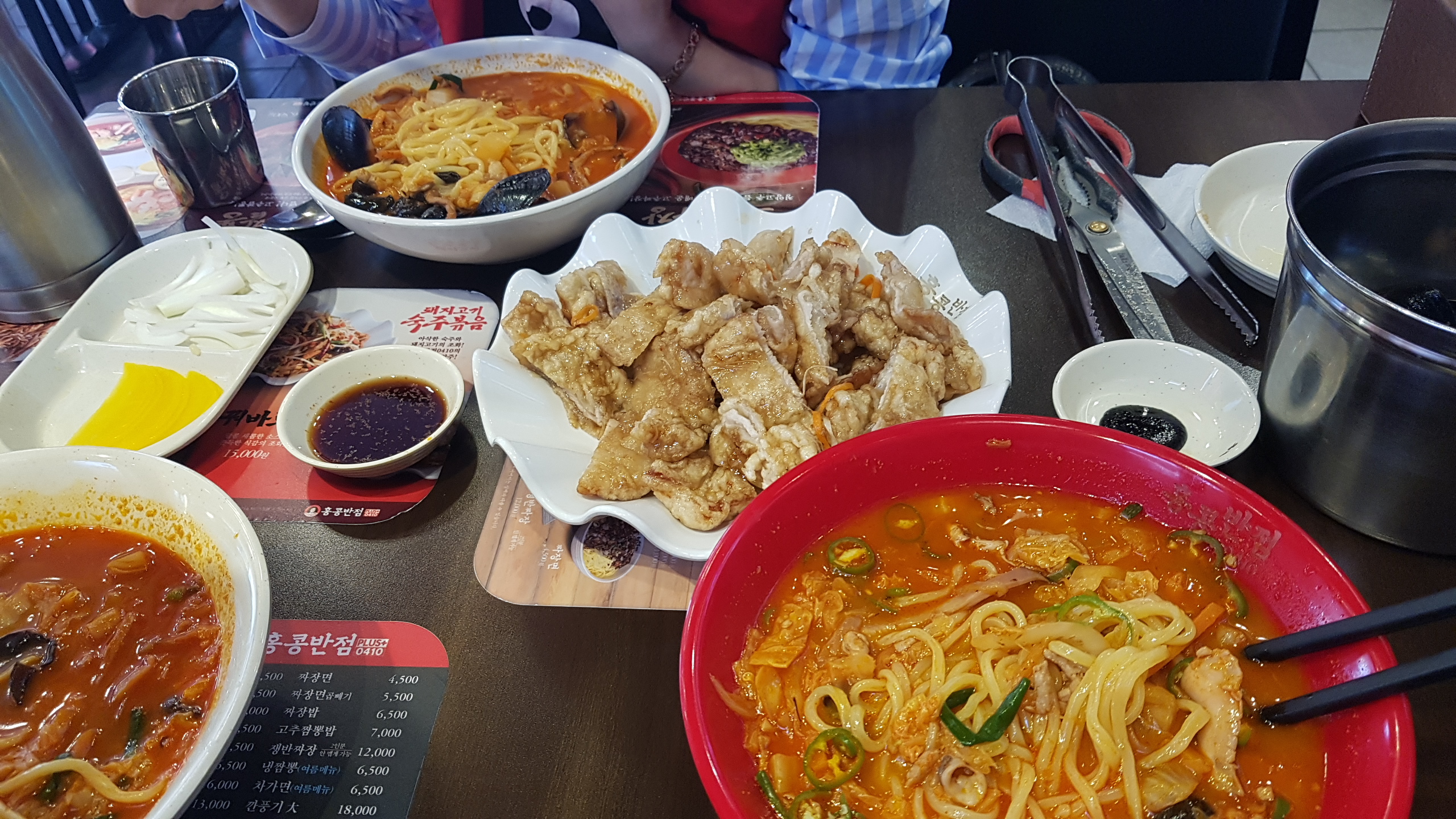 우리가 주문한 메뉴는 짬뽕 2 + 얼큰한 고추짬뽕 1 + 꿔바로우 입니다. 그냥 짬뽕도 좋지만, 매콤한 맛이 생각날 때는 고추짬뽕도 괜찮은 것 같아요. 죽을만큼 매운 맛은 아니예요.... 물론 꿔바로우도 짱~~