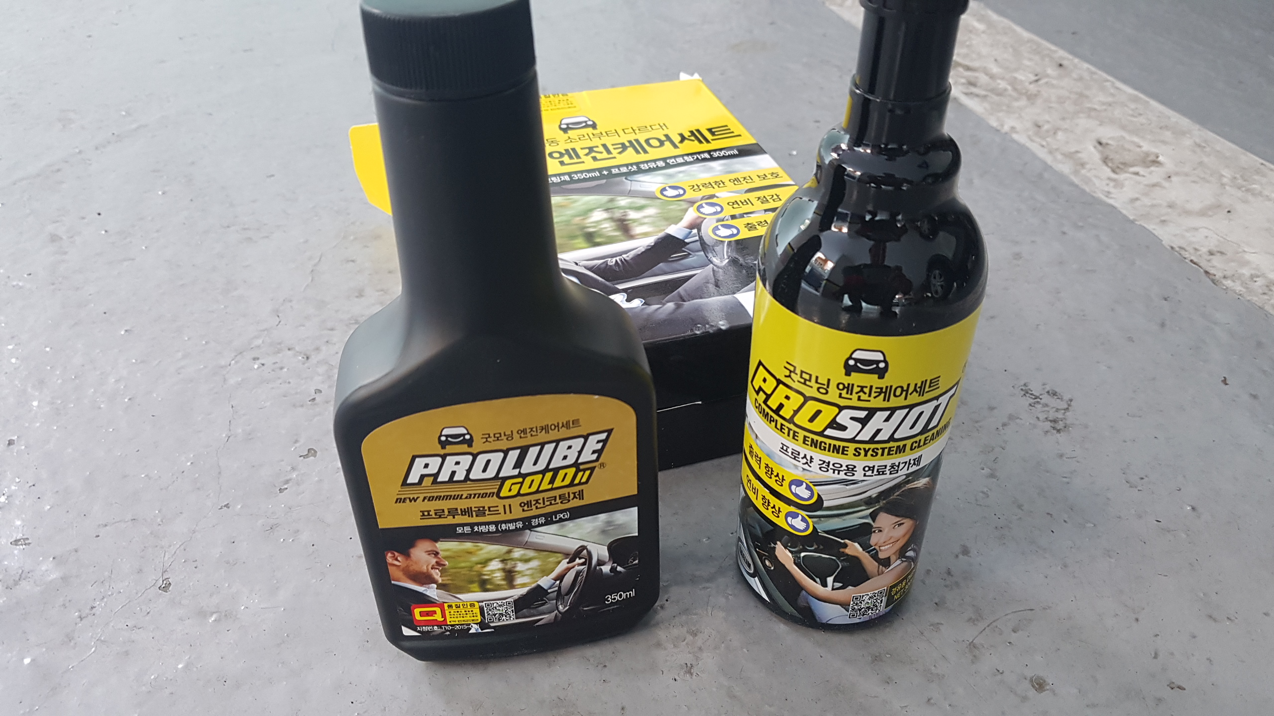 제가 구입한 것은 경유용으로 체계적인 엔진관리를 위한 최적의 구성세트로 자동차 엔진 내부의 엔진 보호효과가 뛰어난 엔진코팅제인 '프로루베골드3'와 연료 인젝터 밸브 세척에 뛰어난 성능을 발휘하여 연비를 3~7% 개선시켜주는 '프로샷' 연료첨가제로 구성됩니다.