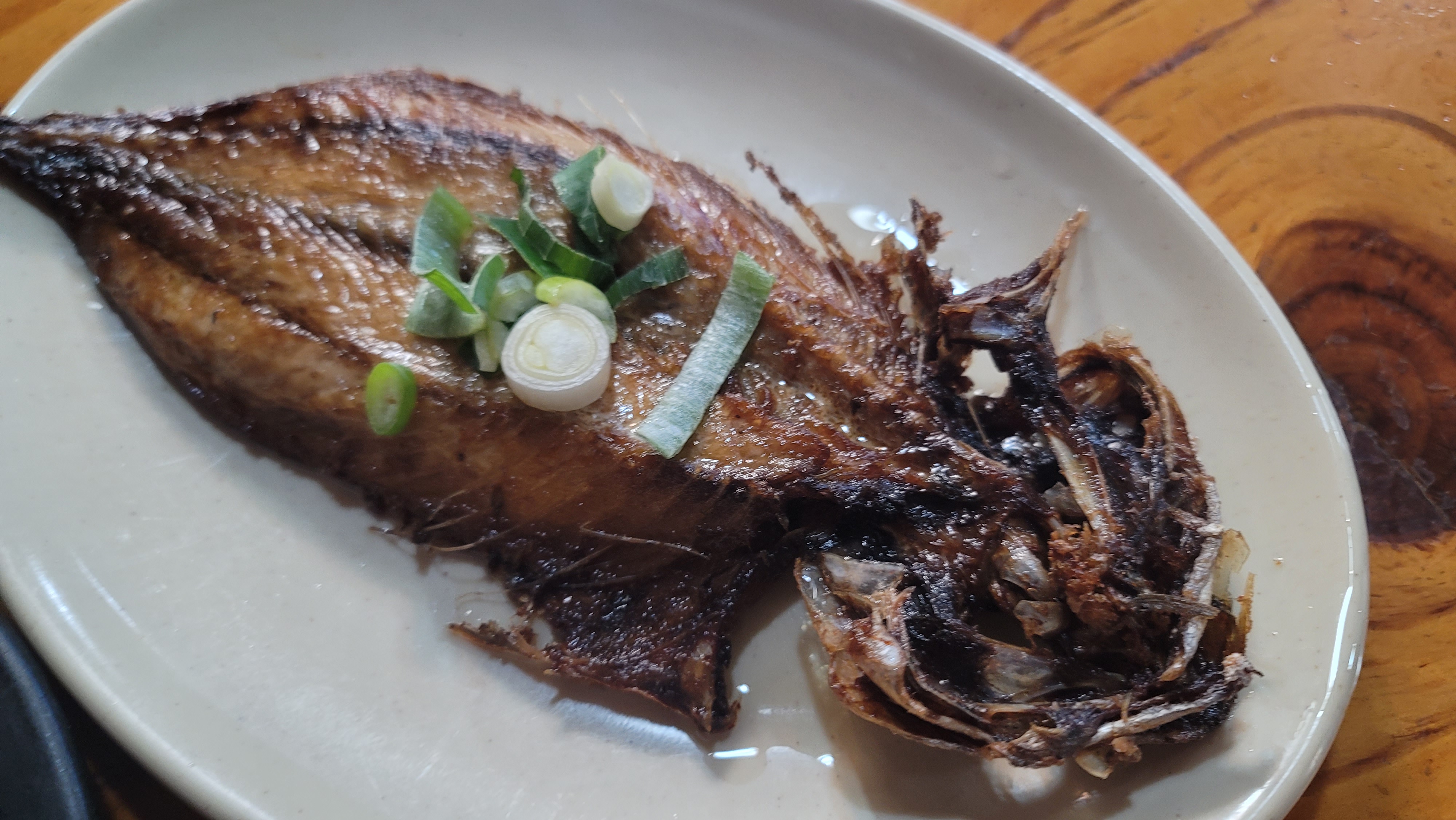 메인이라고 할 수 있는 간고등어구이.. 집에서는 냄새 때문에 잘 못먹는 음식이라 그런지 흔한 생선 간고등어도 너무 반갑네요.. 바로 구워서 나오는 건 아닌 것 같더라구요. 그렇다고 차지도 않고 맛있어요~~