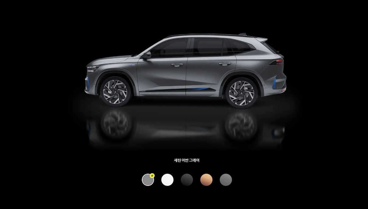 그랑 콜레오스는 전장 4,780mm, 전폭 1,880mm, 전고 1,680~1,705mm, 휠베이스 2,820mm의 차체 크기를 자랑합니다. 강인하고 견고한 이미지를 전달하며, 클라우드 펄, 새틴 어반 그레이, 어반 그레이, 메탈릭 블랙, 미네랄 코퍼 등 다양한 외장 색상을 선택할 수 있습니다.