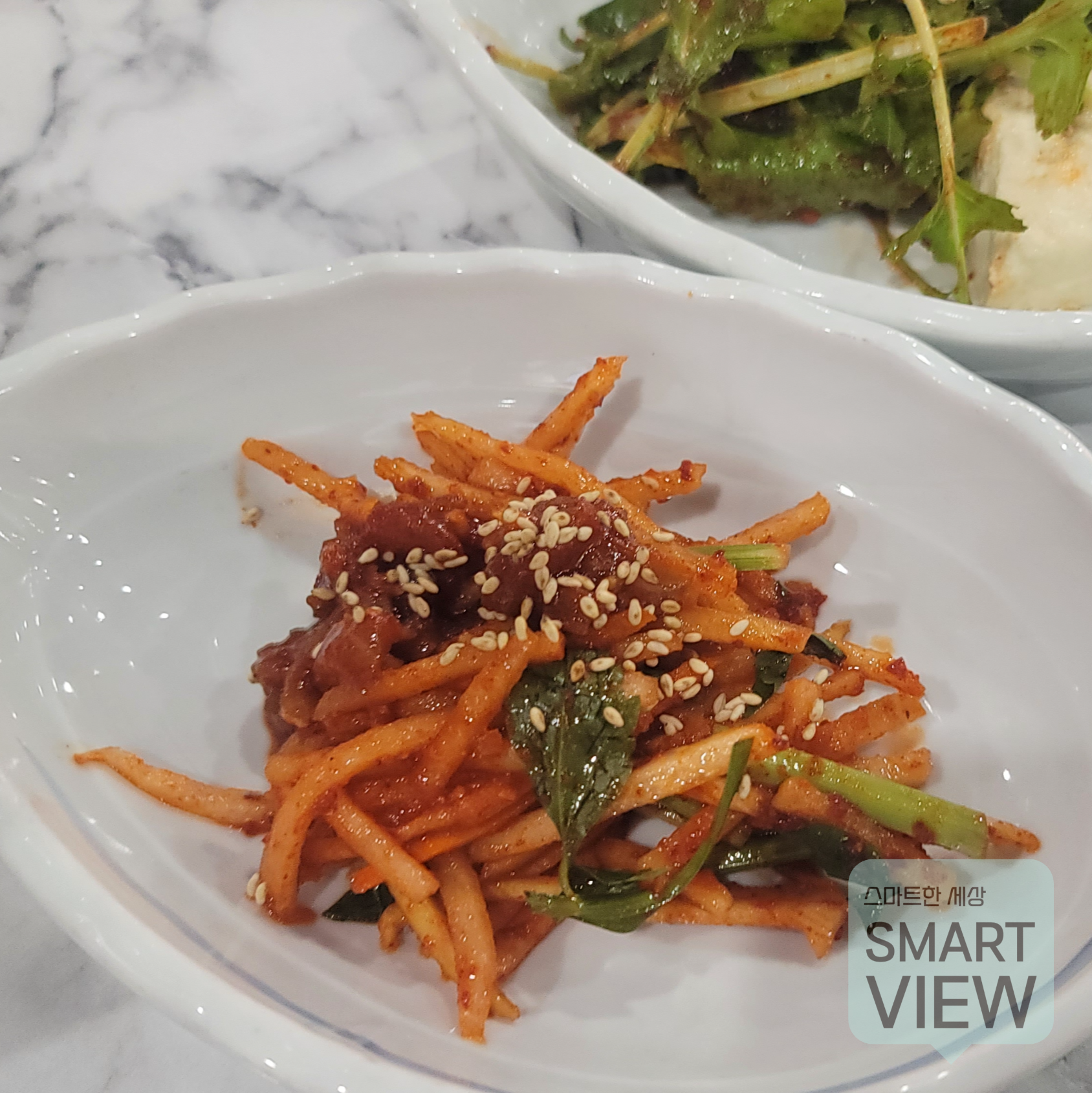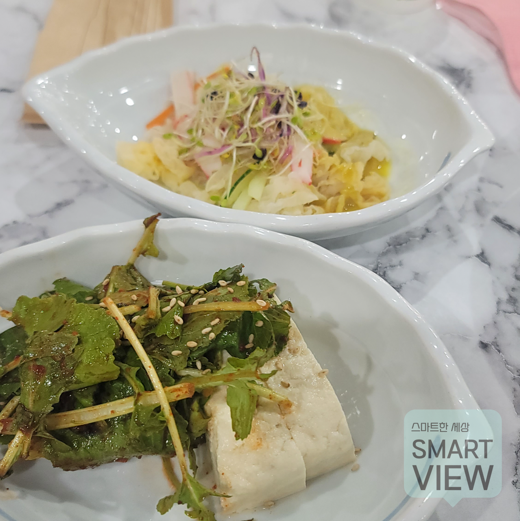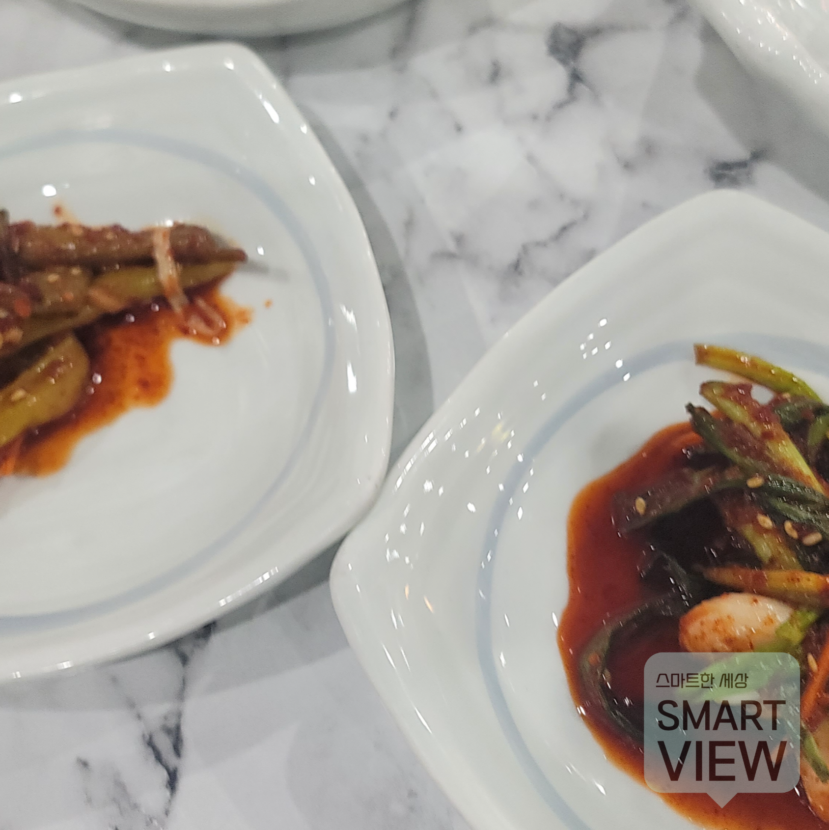 멸치볶음, 고추장아찌, 파김치, 무채무침, 해파리무침, 두부나물 등등 반찬종류가 너무 많고 다들 맛이 있네요. 다만 잡채는 식어서 좀 뻣뻣하다고 해야 하나~~