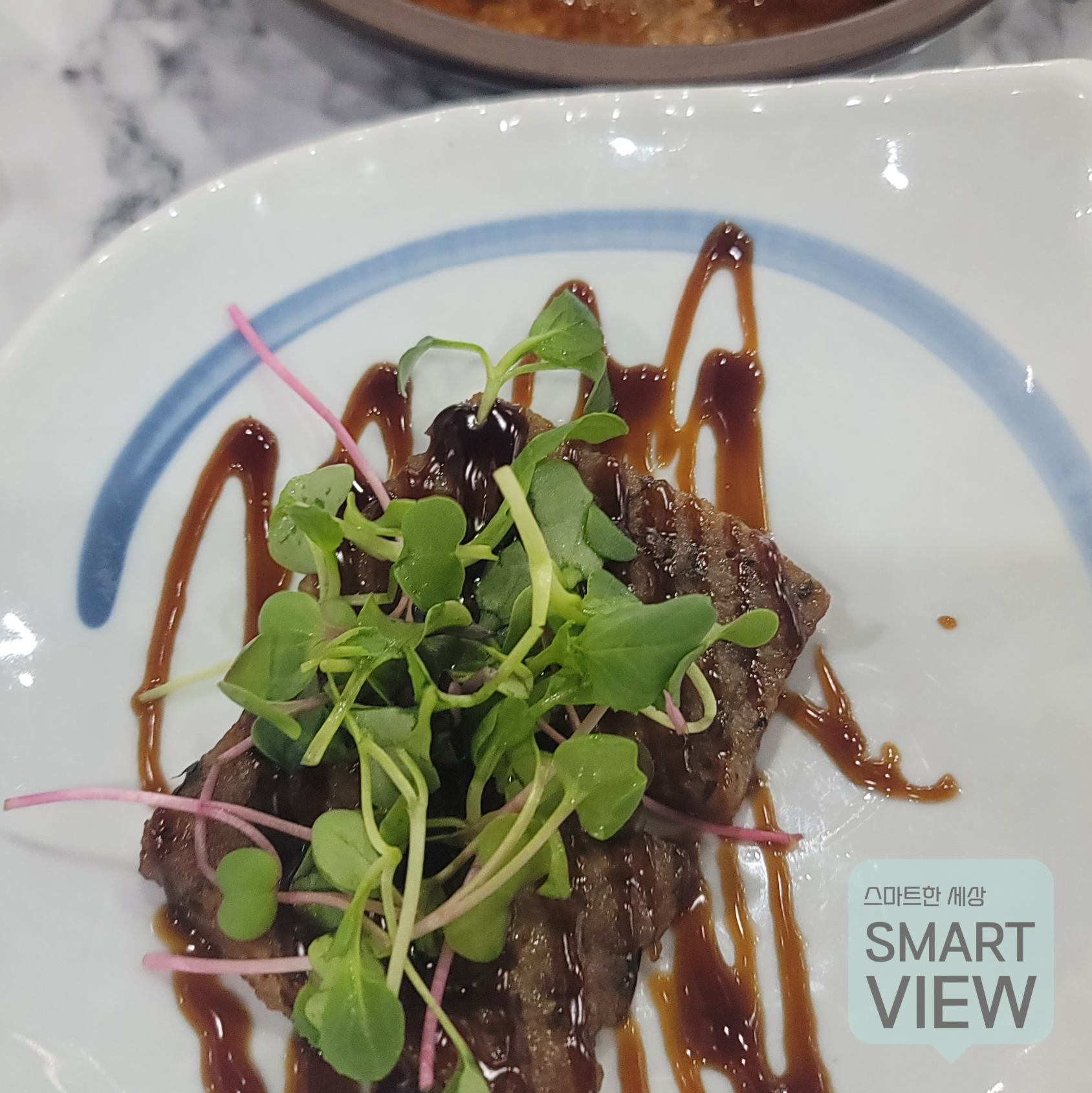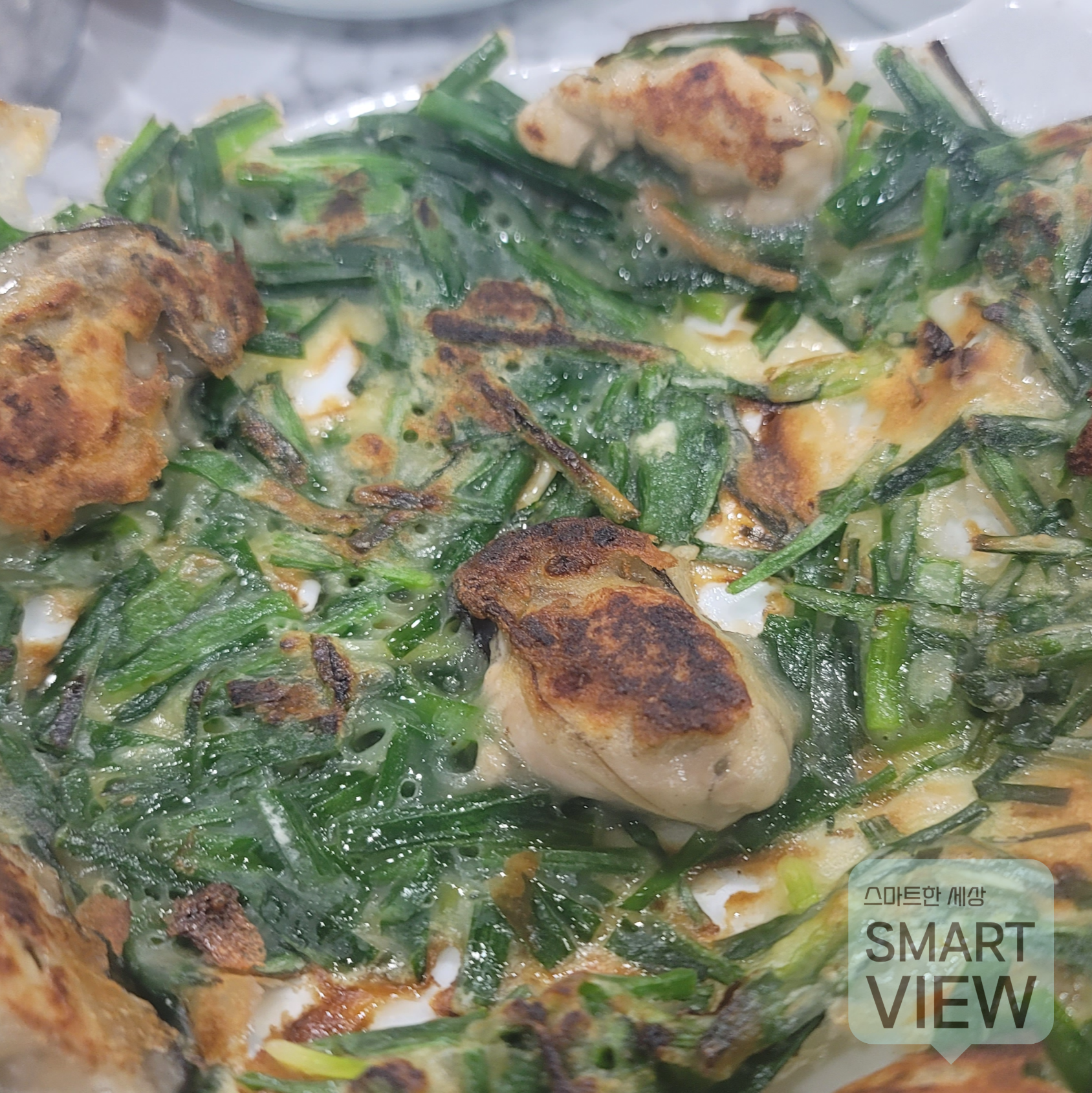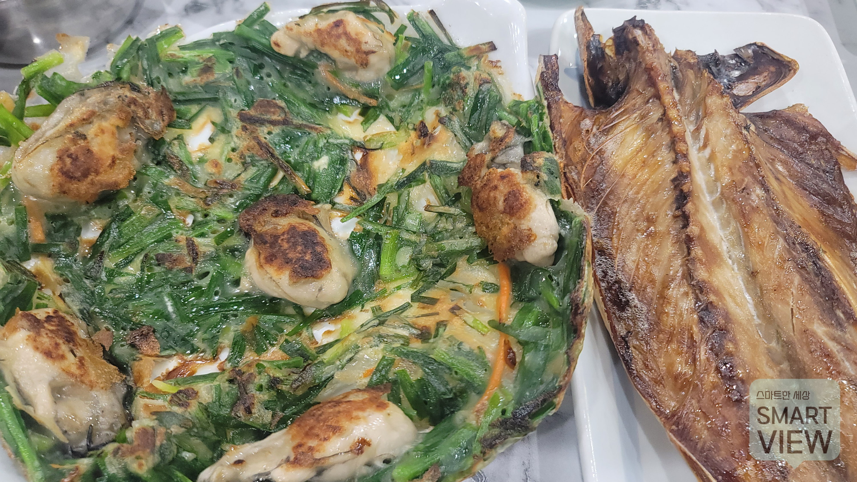 이러서 제육볶음도 있구요. 너비아니까지,, 그리고 오늘의 주인공 중에 하나인 고등어구이와 굴이 들어간 부추전 되겠습니다. 굴이 들어간 부추전은 굴정식을 주문해서 나오는 것 같더라구요.