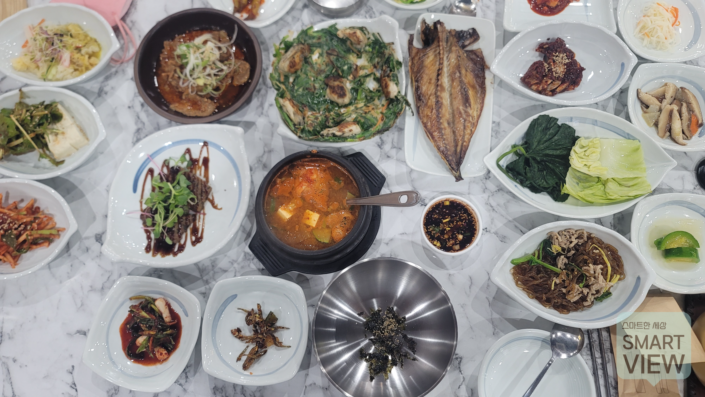 우리는 엄마상차림 1, 굴정식 1을 주문을 했구요. 주문 후 식사가 나오는데는 조금 시간이 걸리더라구요. 하지만, 나오는 반찬가지 수를 보고 기다림이 아깝지는 않았어요. 대충 봐서 20가지가 넘는 반찬이 푸짐하게 나오네요.