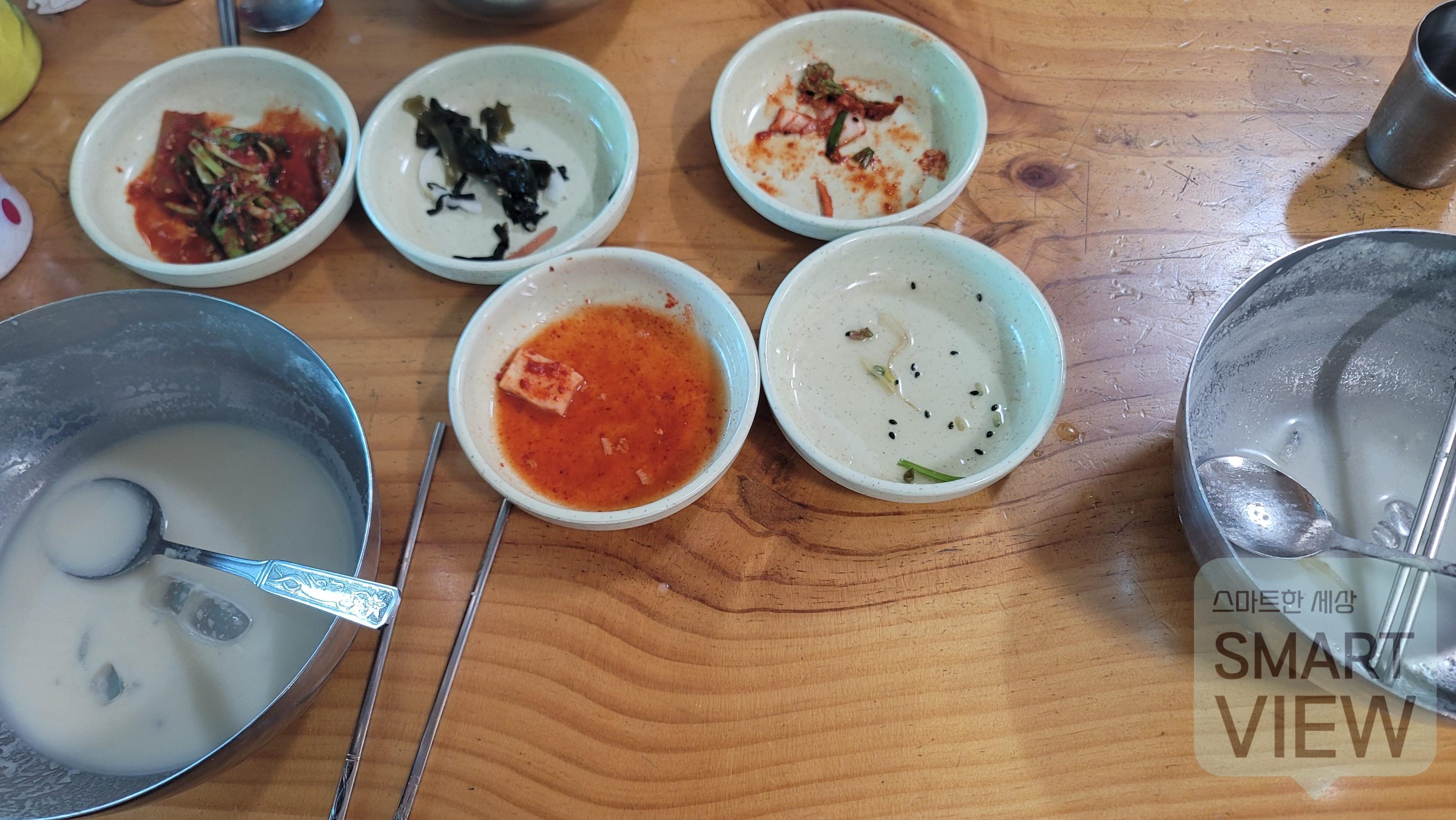 반찬이 다양하지 않지만, 다른 집에는 김치랑, 고추 정도 나오는 것을 감안하면 콩국수 반찬으로는 조금 과한 편이죠?? ^^ 콩물국수가 같이 먹으면 아주 잘 어울린답니다.