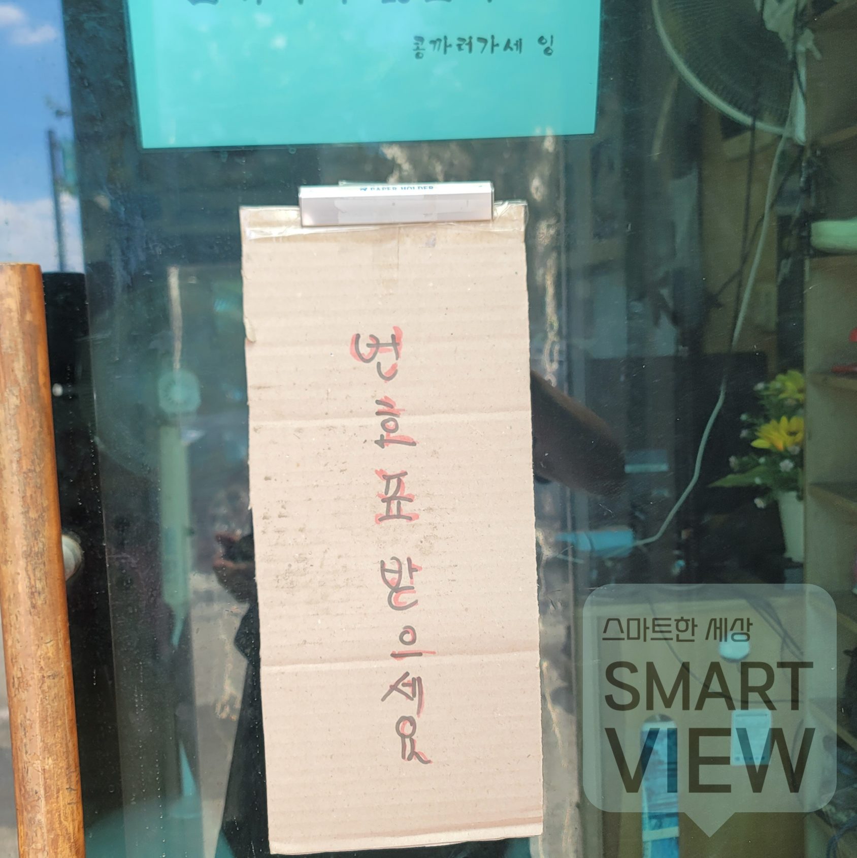 오전 일을 마치고 뭘 먹을까 고민을 하고 있었는데, 고객님께서 이집을 추천하시면서 여름에는 줄을 오래서야지 먹는 집이라고 추천을 하셔서 들러봤어요.. 식당 가기 전에 삼거리에는 작은 간판이 있던데, 정작 식당 앞에는 간판조차 없더라구요. 손님들이 웨이팅을 하고 계셔서 여기구나 했어요. 이집은 술을 판매하지 않구요. 빈 자리가 없을 경우, 안쪽으로 들어가셔서 번호표를 뽑으시고 밖에서 기다라시면 순서대로 불러주십니다.