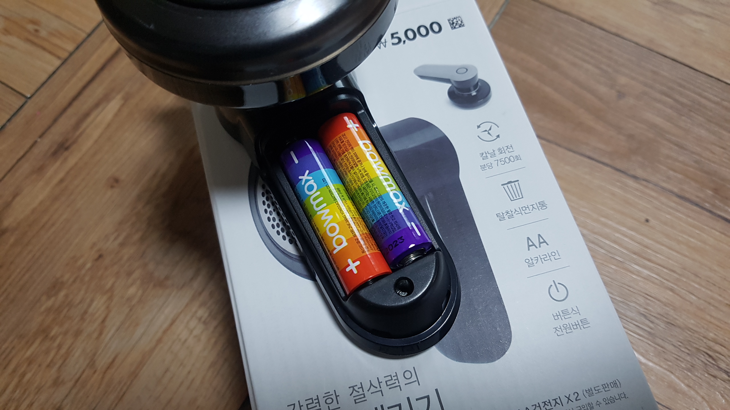 건전지를 AA형 2개가 들어가구요. 모터로 구동하는 것이라 배터리 수명도 짧지는 않더라구요.