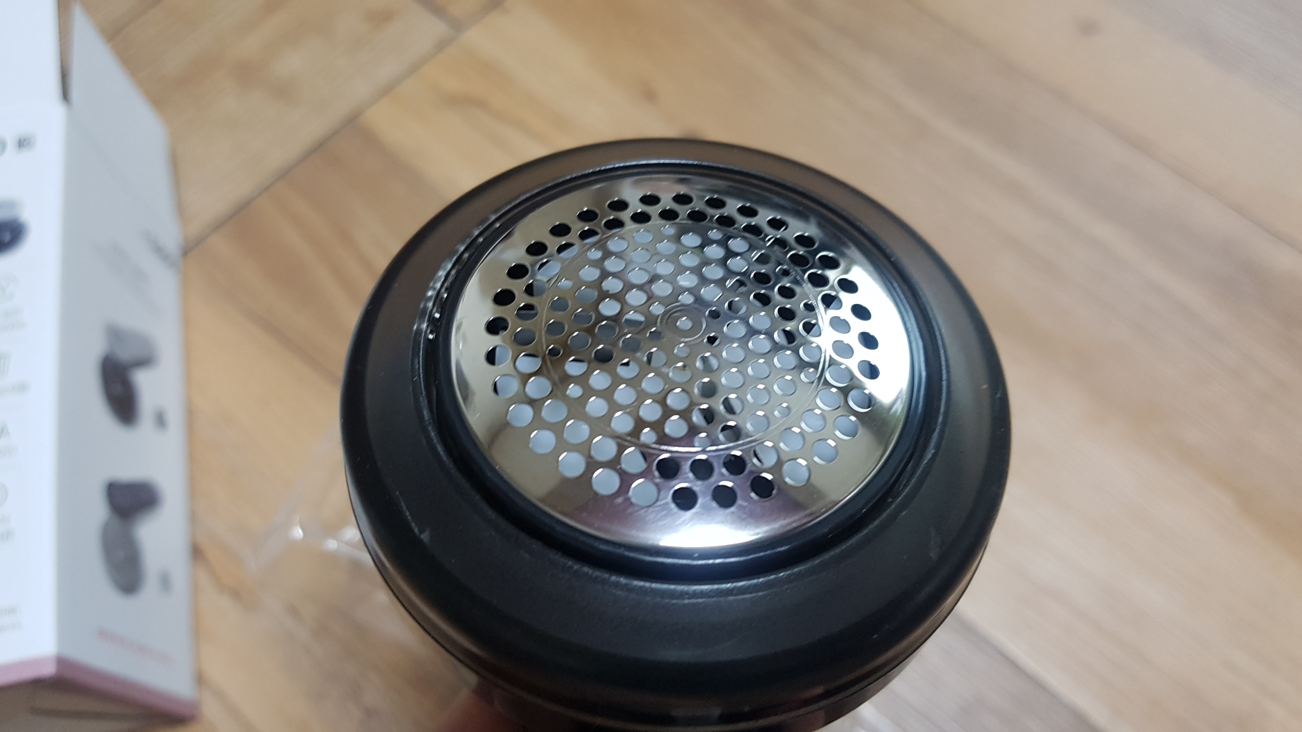 강력한 절살력의 보풀제거기, 칼날 회전은 1분에 7,500rpm이나 되구요. 탈착식먼지통이 있어서 작업 후 보풀제거가 편리합니다. 버튼식이라 사용도 편하구요.