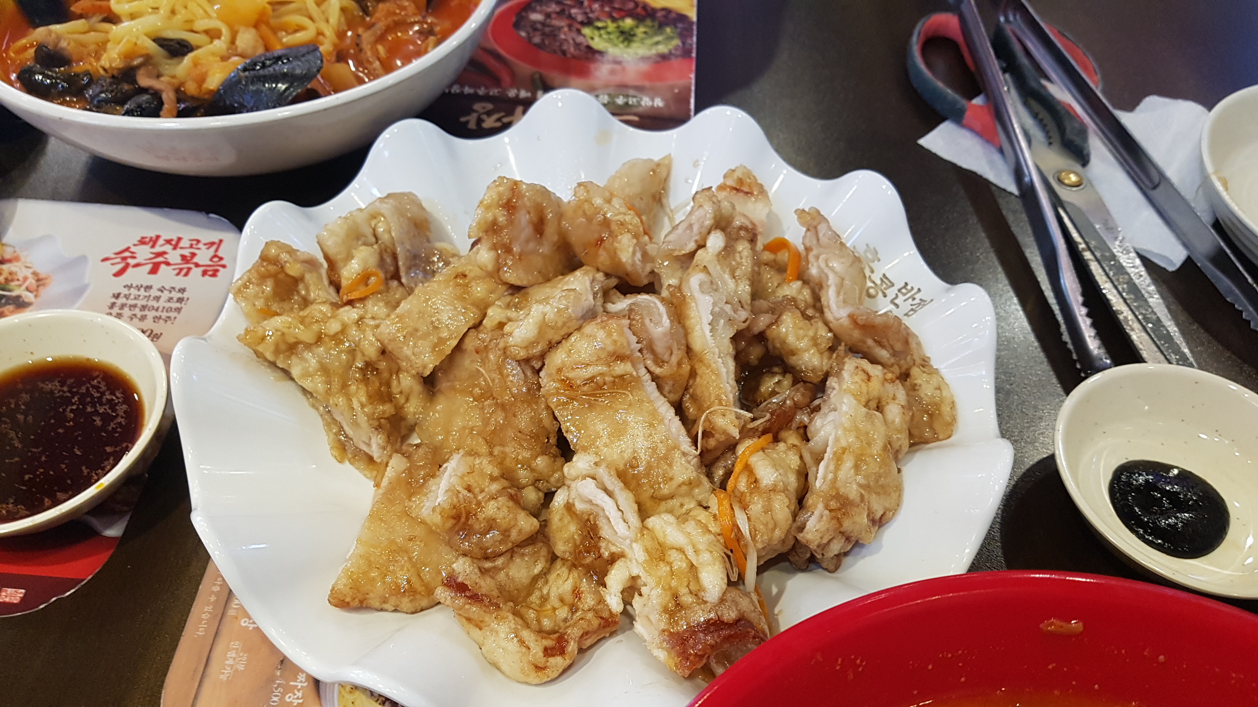 다음은 꿔바로우... 돼지고기를 튀긴 거라 탕수육이랑 비슷한 것 같지만, 소스 등이 달라서 모양도 맛도 차이가 나죠...