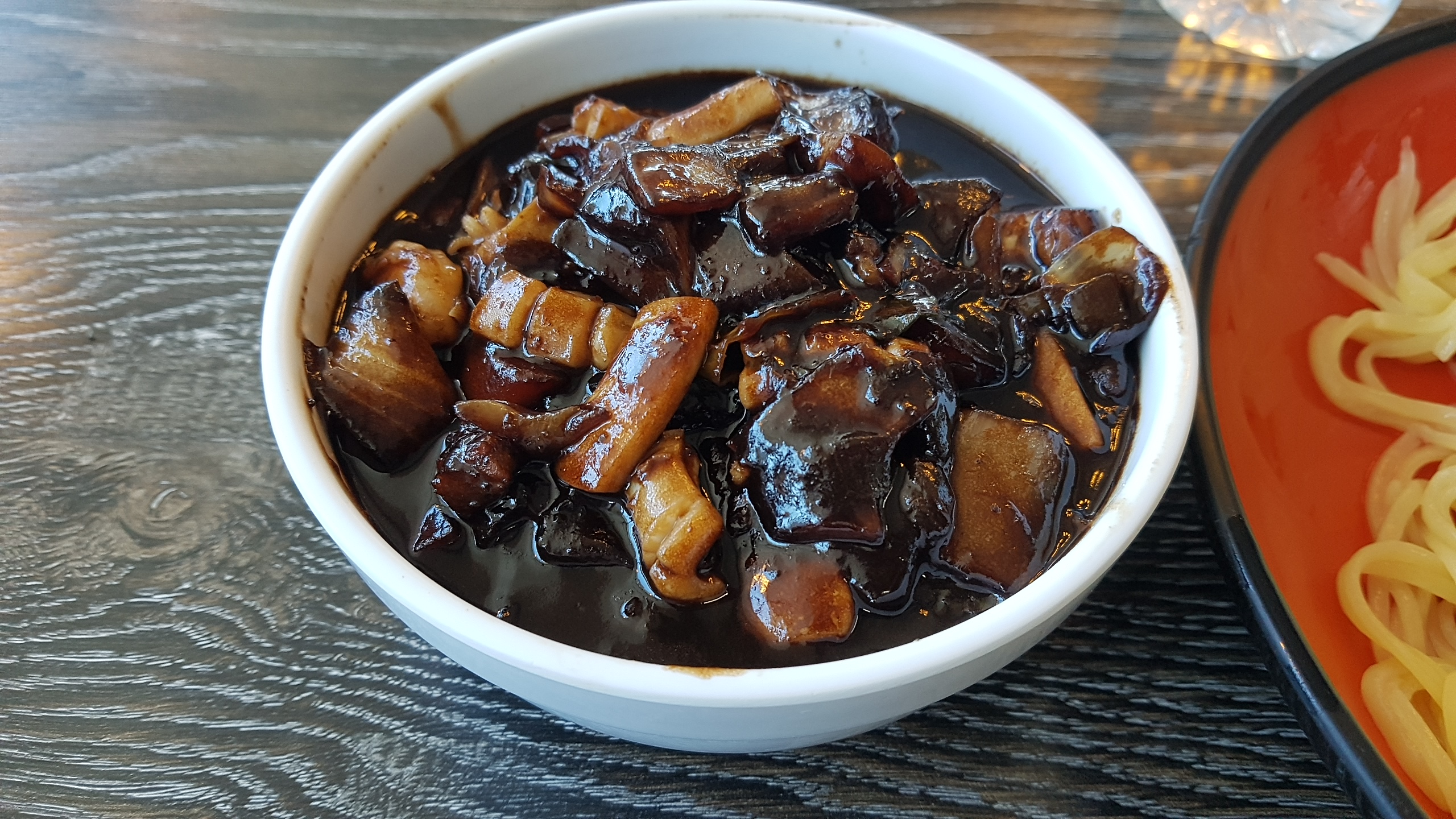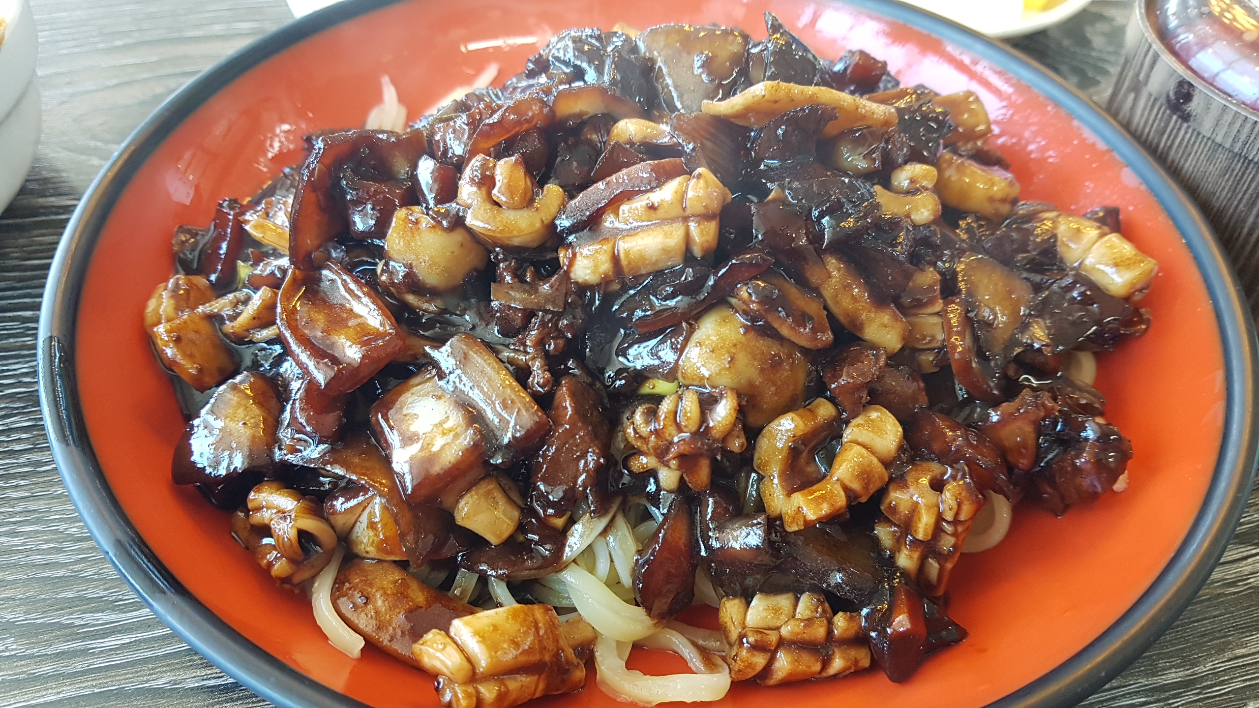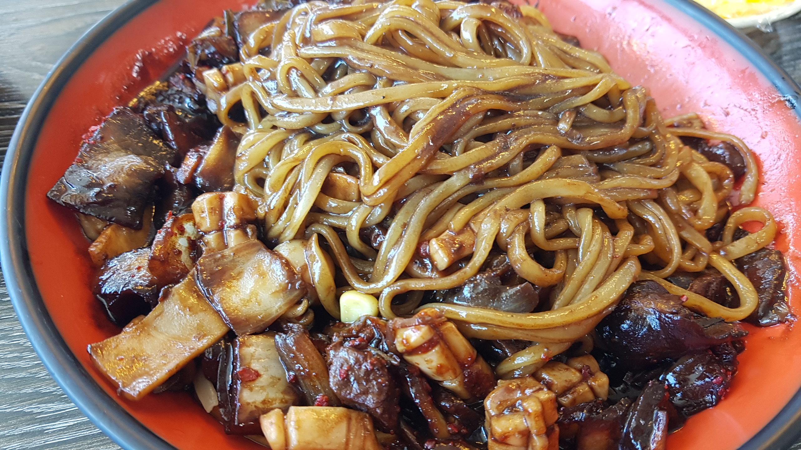 면 위에 간자장 소스를 부어서 열심히 비벼 보았습니다. 주꾸미, 오징어, 고기, 양파와 같은 야채들이 보이시죠.. 확실히 건더기가 많다는 것을 확인하실 수 있습니다. 6,000원짜리가 이 정도면 나쁘지 않은 수준이죠..