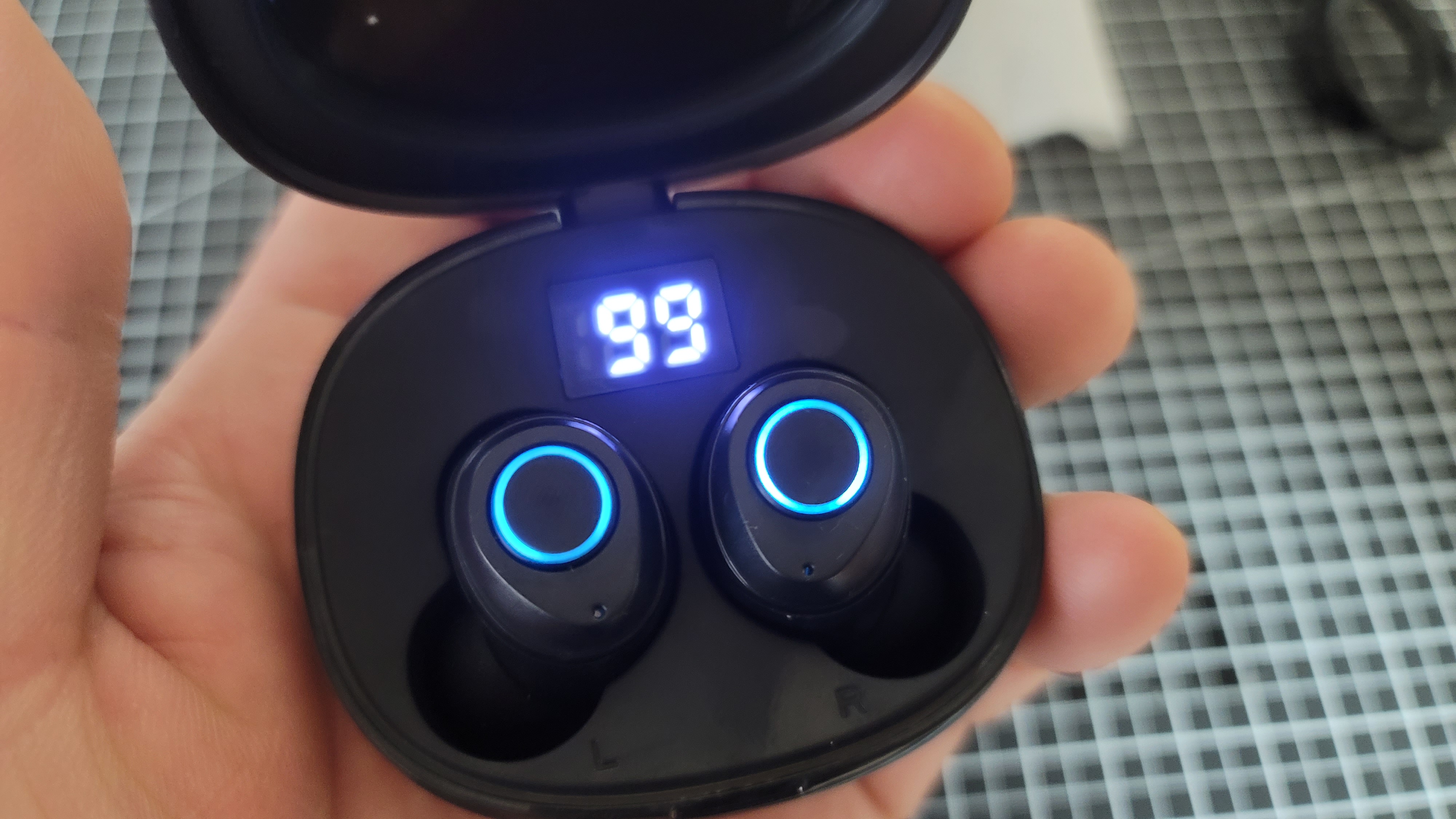 친절하게 충전이 얼마나 되어 있는지 배터리 잔량표시 기능도 지원합니다. 크래들 자체에도 배터리가 있어서 이어폰을 사용한 후 크래들에 넣으면 충전이 되죠.. 99%까지 충전이 되어 있군요.