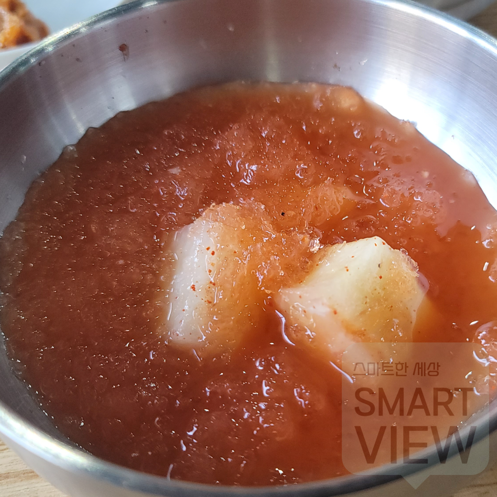 대표 반찬 동치미, 짜지 않고 얼음이 들어가서 아주 시원한 맛을 내죠.. 겨울에는 잘 어울리지 않더라구요. 이가 시려요~~