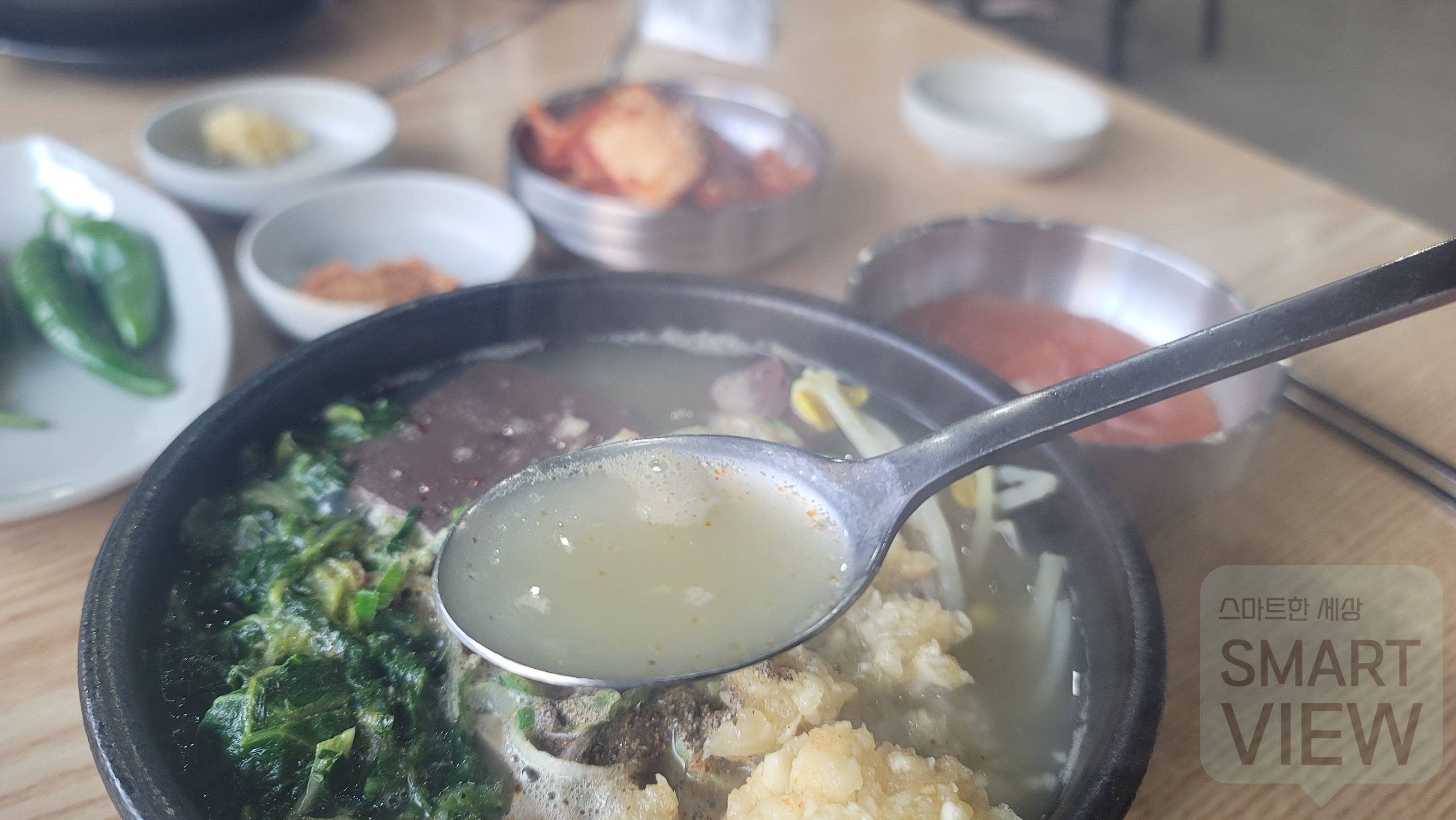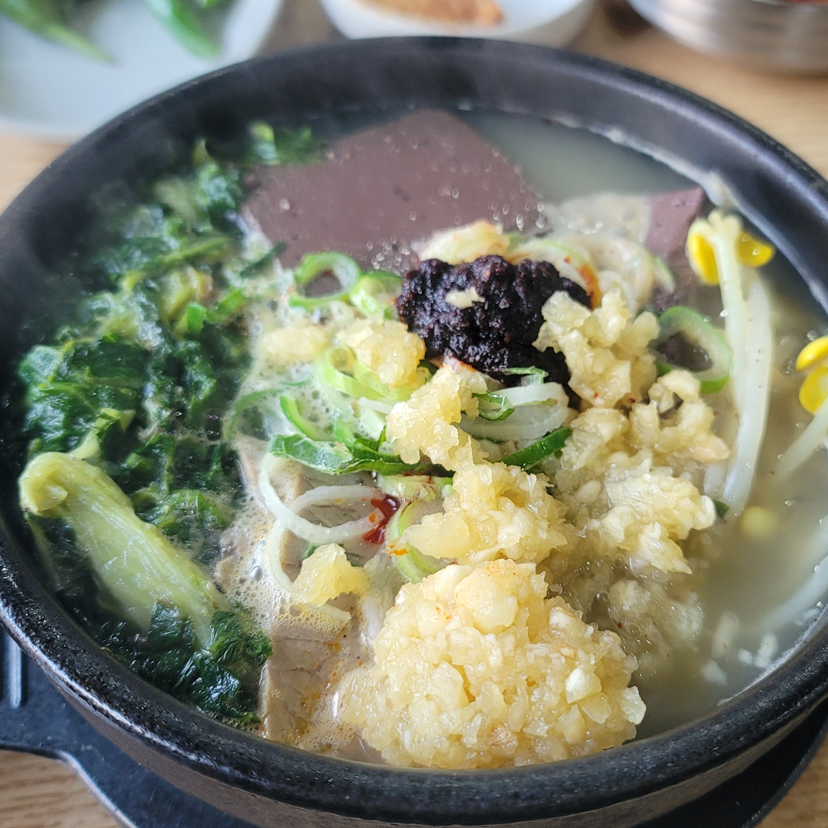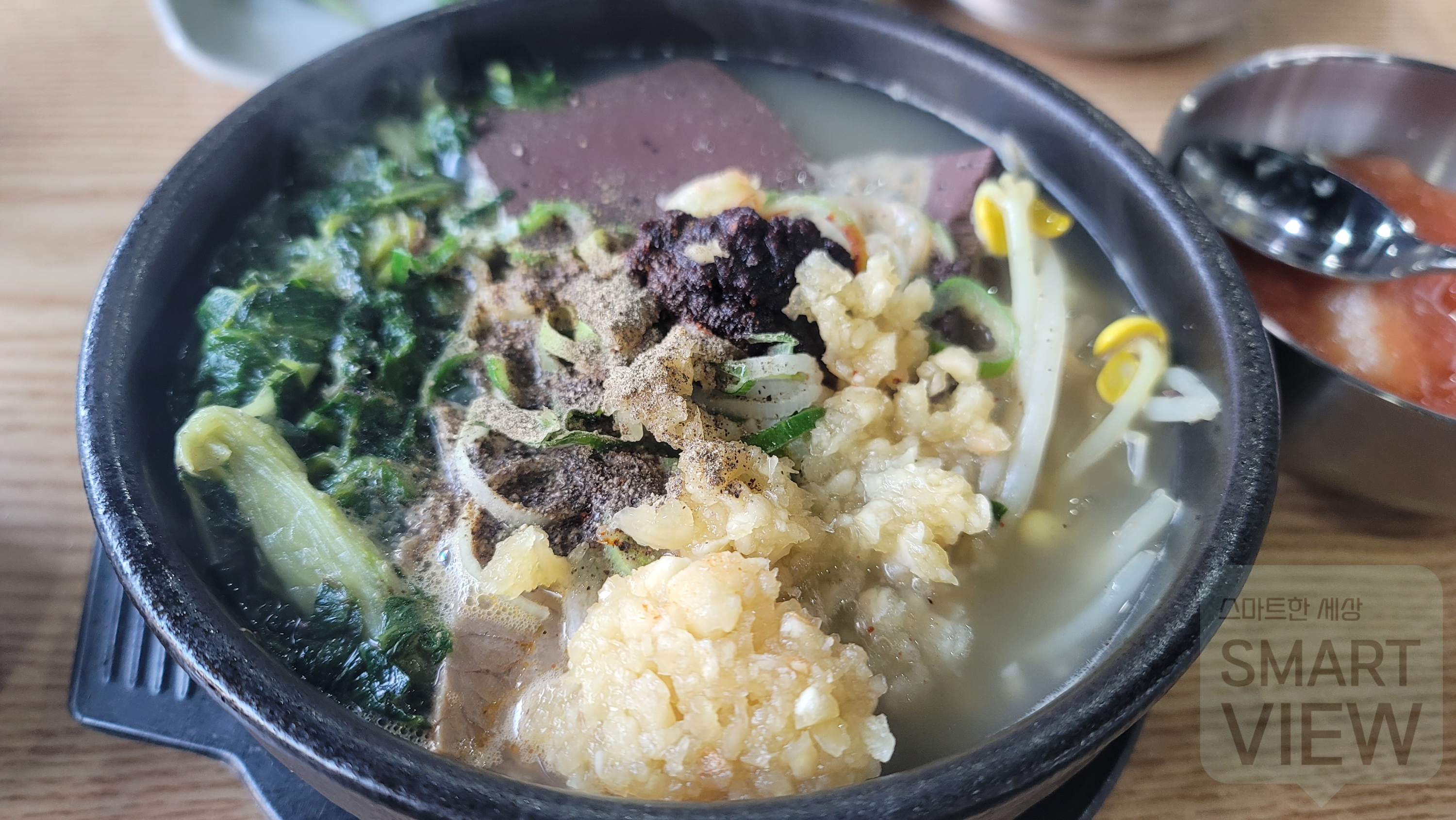 소고기선지국밥에 잘 어울리는 마늘도 듬뿍 넣어주구요. 잡내을 없애주고 매운 맛을 배가시켜주는 후추도 듬뿍 넣어서 해장국을 완성했답니다.