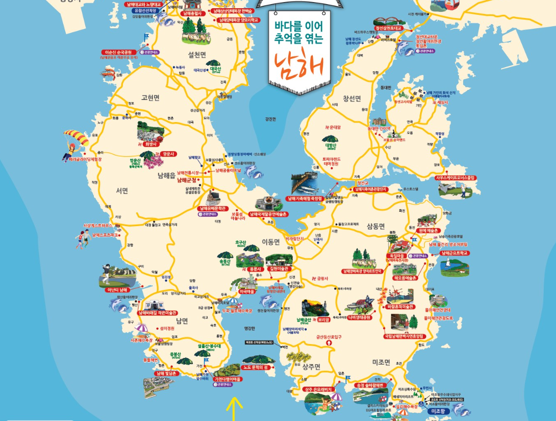 ▪ 육지와의 연결: 남해대교와 창선-삼천포대교를 통해 육지와 연결되어 있습니다.