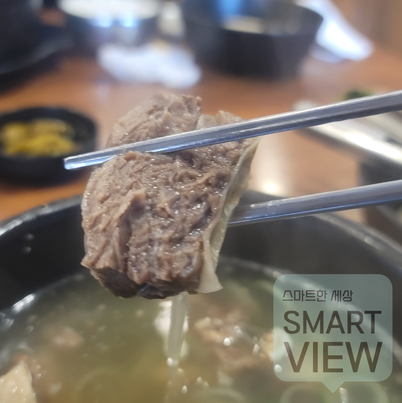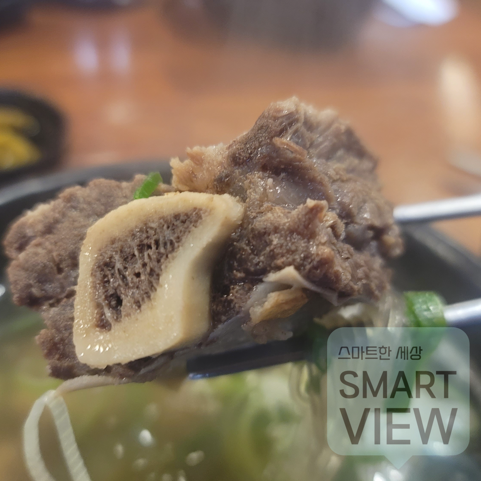 갈비탕 안에는 갈비뼈가 5개 정도 들어 있어요. 아쉽게도 국내산 한우는 아니지만, 고기양도 꽤 많고 아주 부드러워서 먹기가 편하죠. 고기를 뼈에서 발라 맛있게 먹었구요. 마지막으로 밥을 말아서 배를 완전히 채웠답니다.