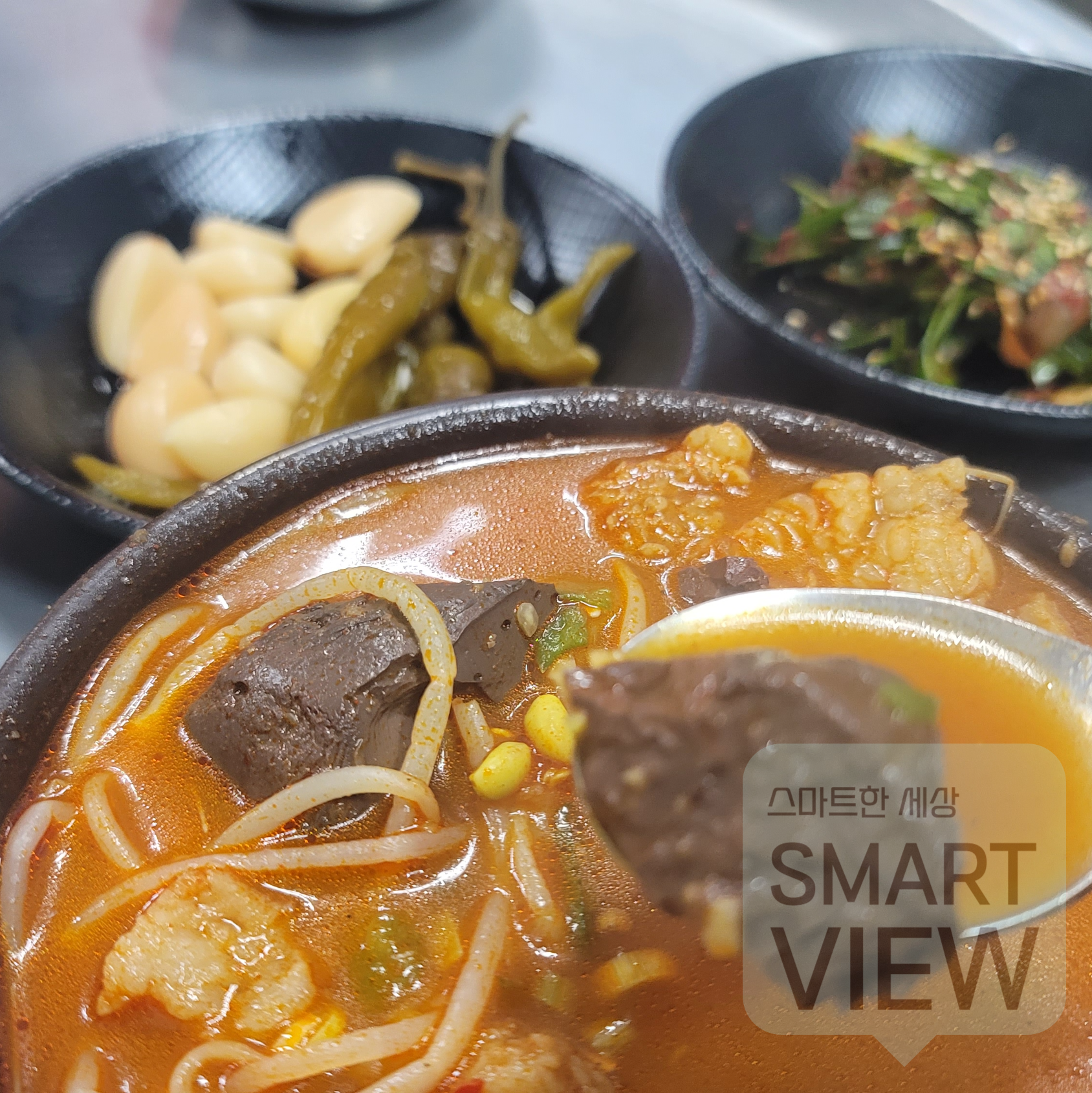 후추도 듬뿍 뿌린 후 잘 섞어서 먹어봤는데요. 앞에서 말씀드린 대로 국물은 괜찮았어요. 선지를 한번 먹어볼까요~~ 선지도 신선하니 맛있네요.. 선지양이 조금 더 많았으면 하네요.