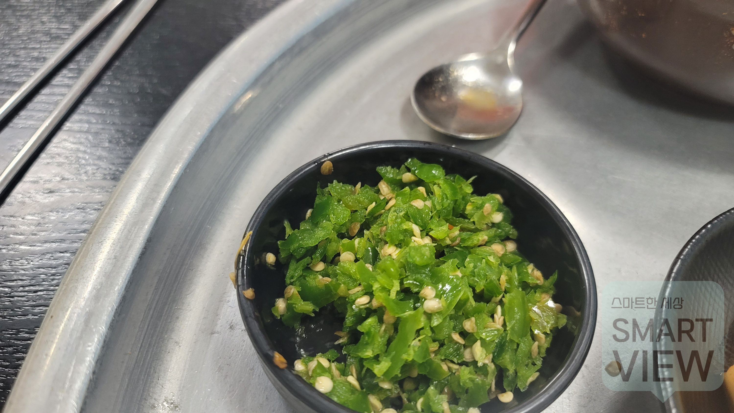 잡내를 더 잡기 위해 추가로 다진고추를 주문한 후 마구마구 넣었죠.. 매운 걸 좋아하시는 분들은 추가가 필수인 것 같아요..