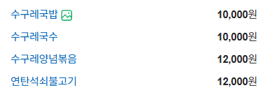 이방식당의 메뉴~ 수구레국밥은 일반이 10,000원, 특12,000원이구요. 수구레국수, 사골순대국밥, 양념볶음, 석쇠불고기 등도 있어요. 순대국밥도 맛있다고 하니 수구레가 싫으신 분은 순대국밥을 드셔면 되겠습니다.