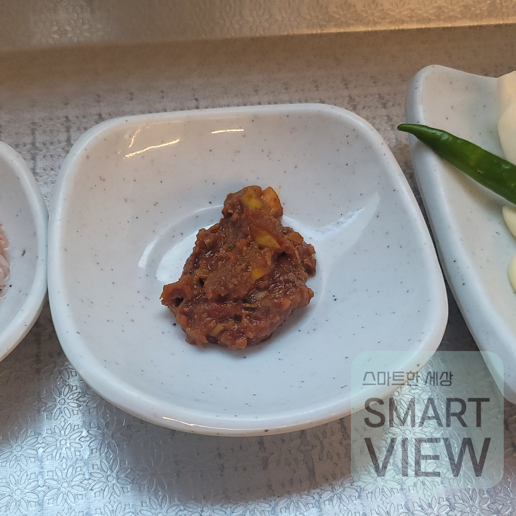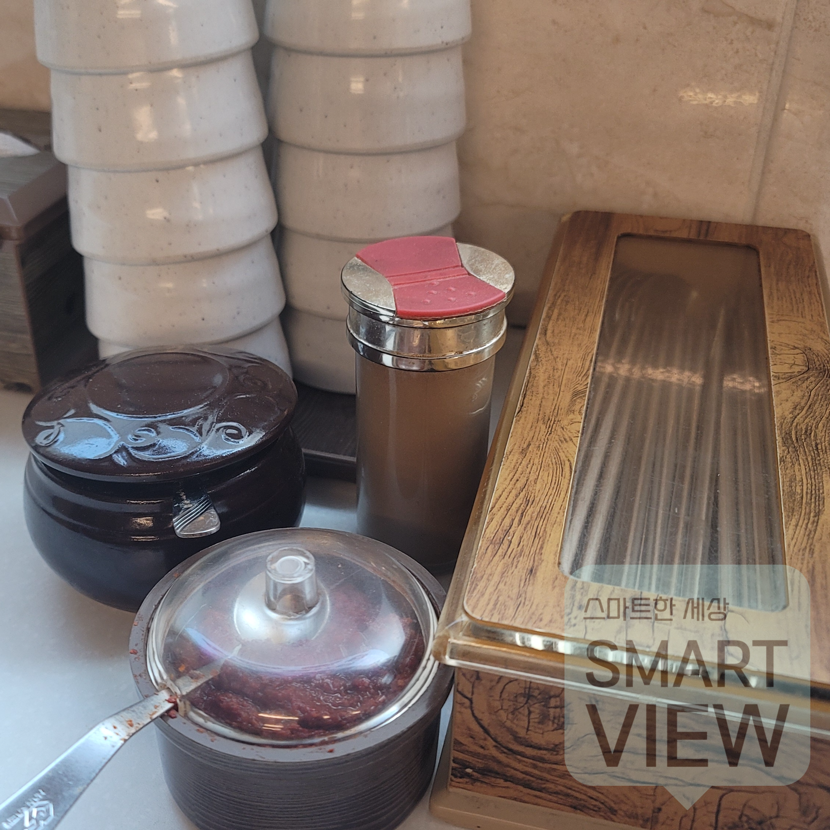 이제 본격적으로 먹을 준비를 해봐야겠어요.. 테이블에 기본적으로 비치가 되어 있는 다대기양념장, 후추, 소금, 가져다 주시는 새우젓으로 먼저 간을 맞춰 보았어요..