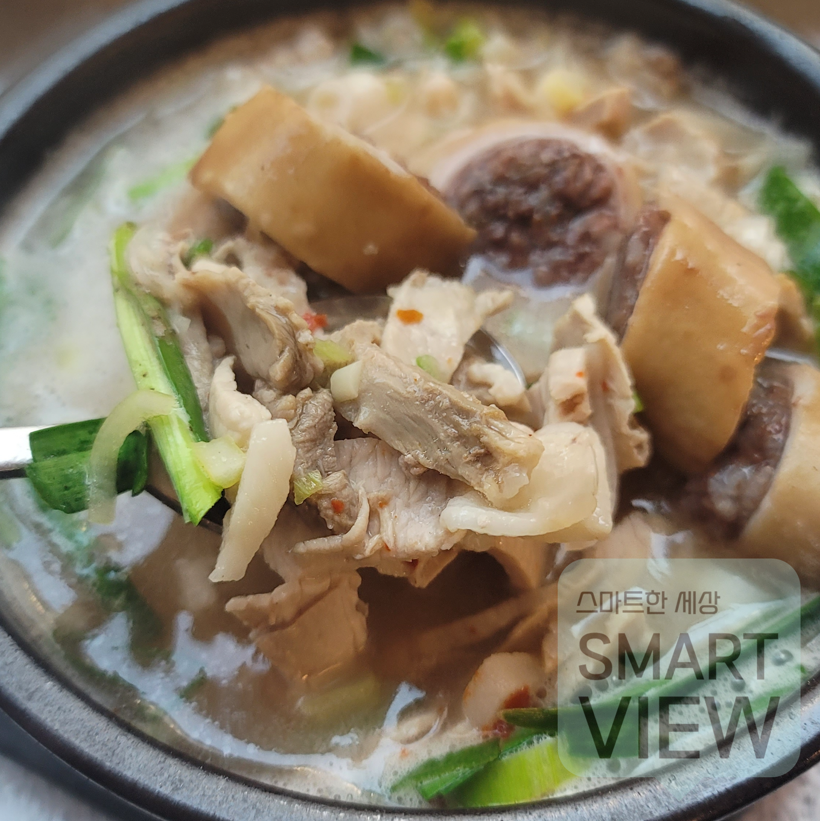 간을 하시면 육수을 섞어보니 안에 있는 고기랑 순대가 모습을 들어냈는데, 처음 날때는 고기가 많지 않은 것 같지만 국물 안에는 많은 양의 고기가 들어있답니다. 몇 년 전에만 해도 순대랑 고기만으로 배가 차서 밥은 절반만 먹고 온 적도 있었어요.