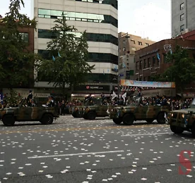 국군시가행진 썸네일형 리스트형 제65주년 국군의날 한미연합사 헌병대 시가행진 제65주년 국군의 날 시가행진 연합사 헌병대 편입니다. 한미연합사는 전시에 미국의 4성장군이 전쟁의 지휘는 맞게 되는 사령부를 말합니다. 부사령관은 한국군 4성장군이 맞게 되죠. 건군 65주년을 맞아 이번 행사에 특별히 참가했다고 하네요. 연합사지만 미군으로 이뤄진 시가행진입니다. 한미연합사의 행진에서 미군의 시가행진 특징을 알 수 있습니다. 팔을 짧게 흔들면서 걷는 모습이 색다른네요. 우리 국군은 팔을 하늘 높이 크게 흔드는데 비해 짧게 흔들면서도 절도가 있어서 나름 느낌이 있네요. 연합사의 군악대 모습입니다. 군기대나 군악대의 참가인원은 소규모이지만, 특이한 행진과 저의 미군의 대한 선입견(?)으로 멋이 느껴지네요. 헌병대의 상징 기동대 모터싸이클을 선두로 헌병대가 입장하고 있습니다. 진짜사나이의 김.. 더보기 공군 국군의날 퍼레이드 (공군사관학교, 혼성부대 등) 육군과 해군에 이어 공군의 시가행진을 소개하겠습니다. 이번에 65주년을 맞는 국군의 날 기념 시가행진은 5년마다 열리는데요. 과거에는 매년 거행되던 것을 5년마다로 해서 성대하게 치러진다고 하네요. 특히 올해는 가장 많은 예산과 가장 큰 규모로 열렸다고 합니다. 공군 시가행진 지휘부를 선두로 공군 군악대가 입장하고 있습니다. 우리나라 군악대는 세계 대회에서 좋은 성적을 거두고 있다고 하네요. 공군소속 부대들을 대표하는 군기단입니다. 군기단이 참석하면 모든 부대가 시가행진에 참가했다는 상징성이 있죠. 이어 공군사관학교 생도들의 시가행진입니다. 공군사관학교는 서울의 보라매공원에 있던 것을 충북 청원들으로 이전했습니다. 공군혼성부대가 입장하고 있습니다. 혼성부대라고 하면 남녀혼성이 아니라, 전투와 수송을 통합.. 더보기 이전 1 다음