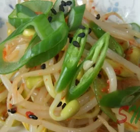 콩의 만든 음식이라고 하면, 가장 먼저 생각나는 것이 된장, 청국장, 두부 등일텐데요. 이들 음식과 마찬가지로 진정 콩나물도 콩요리에 대표라고 할 수 있죠. 식당에서 밥을 먹을 때면 거의 빠지지 않고 나오는 반찬이 콩나물무침일겁니다. 완전식품 콩의 그대로 먹을 수 있고, 콩나물 줄기의 풍부한 섬유질은 우리의 장을 튼튼하게 해주니까 영양과 건강에도 아주 좋은 음식이죠. 그래서 오늘은 콩나물부침을 맛있게 만드는 법에 대해서 알아보도록 하겠습니다. 준비물: 콩나물 300g, 마늘3개, 대파, 고춧가루, 소금, 참기름 콩나물무침의 간은 소금 대신 새우젓으로 하는 것도 좋습니다. 젓갈은 간을 맞춰 줄뿐만 아니라, 채소요리에 부족한 단백질을 보충해 주시기도 하지요. 1. 콩나물을 깨끗한 씻은 후에, 끊은 물에 넣어..