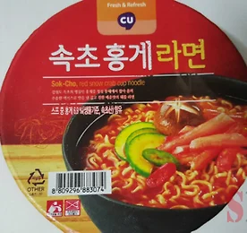 씨유에서만 파는 맛있는 컵라면, 속초홍게라면을 사왔어요. 올해는 홍게랑 인연이 있는지 홍게를 3번 정도 먹은 거 같은데요. 편의점을 찾았다가 홍게라면까지 있는 걸 보고, 이거다 싶어 삼각김밥과 함께 저녁으로 준비를 했습니다. 가격은 1,400원이구요. 속초에서 유명한 홍게가 라면과 만난 거네요. 조리방법은 뚜껑을 표시선까지 열고 분말스프와 액상슾를 면위에 넣고 끊는 물을 안쪽 표시선까지 부어주시면 되구요. 뚜껑을 닫고 4분간 불린 후 젓가락으로 잘 저은 후 드시면 됩니다. 스프 중에 홍게가 6.9% 들어있어서 이름만 홍게라면은 아니구요. 115g의 무게로 열량은 550kcal 정도 되니 참고하세요. 홍게라면은 우유, 따옹, 대두, 밀, 게, 새우, 쇠고기, 돼지고기, 오징어, 닭고기, 굴, 홍합을 함유하..